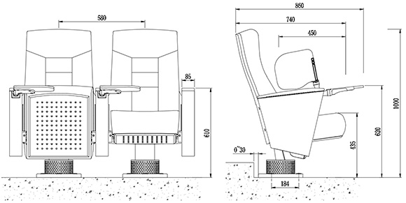 | 座椅深度:860±10mm,扶手高620±10mm:最小排距:900mm。 |