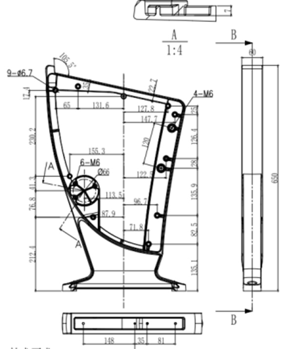 4.下藏式寫字板:寫字板鏈接鋁頭、托板采用優質鋁合金材料經模具一體壓鑄成型。寫字板面板采用ABS復合材料經模具一體注塑成型,寫字板固定方式為機械原理高強度螺栓,使寫字板鏈接部位越用越結實,不會出現松弛現象,尺寸規格:長度為381.2±2mm,寬度為261.2±2 mm,厚度為45mm;扶手和寫字板向上傾斜6.5度保證書寫自然狀態,寫字板打開回收時需帶消音功能,不可有反彈力與噪音出現。