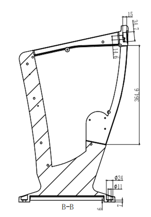 11.座、背外板采用優質夾板經模具壓彎成型。外型成弧型,美觀大方,具有曲線美。背外板尺寸:長度為740±2mm,寬度為495±2mm,厚度為15mm。座外板尺寸:長度為440±2mm,寬度為425±2mm,厚度為12mm。
